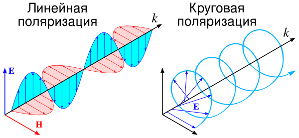 2) Свет распространяется перпендикулярно оптической оси. Тогда поляризацию можно разложить на две проекции — параллельную оптической оси и перпендикулярную. Эффективный показатель преломления будет разным для света двух ортогональных поляризаций, и при прохождении через слой (пластинку) материала может наблюдаться сдвиг по фазе между двумя компонентами. Если исходная поляризация линейная и ориентирована либо полностью вдоль, либо полностью перпендикулярно оптической оси, то на выходе из пластинки она не изменится. Однако, если исходно свет поляризован под углом к оптической оси, либо поляризация эллиптическая или циркулярная, то при прохождении через пластинку из одноосного кристалла поляризация может измениться из-за сдвига по фазе между компонентами. Сдвиг зависит от толщины пластинки, разницы между показателями преломления и длины волны света.