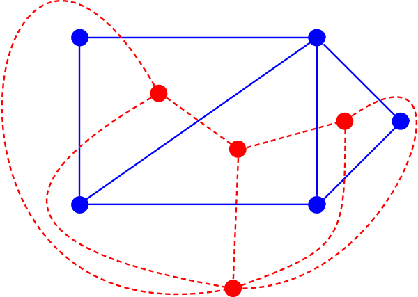 - Двойственный граф является псевдографом: в нём могут быть петли и кратные рёбра.