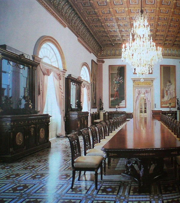В этой комнате сохранены несколько президентских стульев, в частности, Хосе Антонио Паэса, Антонио Гусмана Бланко, Хоакина Креспо и Хуана Висенте Гомеса. Мебель комнаты включает в себя кушетки, стулья, два стола и фортепиано. На полу мозаичное панно, а потолок перекрещен темными деревянными балками.