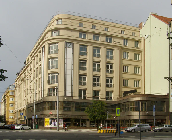 Здание представляет собой один из важных образцов межвоенной архитектуры — монументальное строение, созданное Алоисом Крофтой. Оно возводилось в два этапа (1926 и 1935 годы). Архитектор использовал закруглённые углы, а также характерные приёмы рондокубизма, наряду с классическими элементами[4].