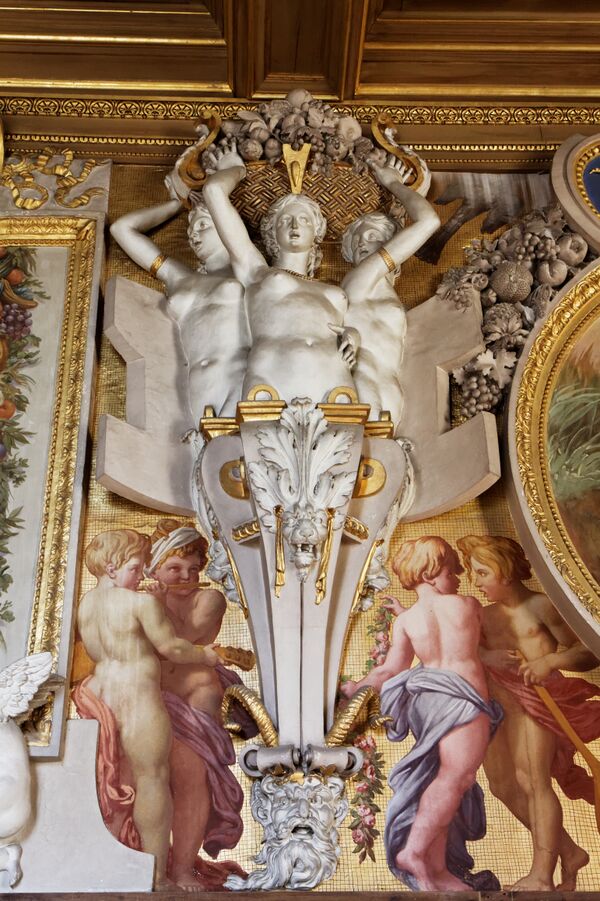 Фигуры на фресках Россо «кажутся чуть уплощёнными благодаря очень светлым краскам и орнаментально сплетающимся линиям. Это ощущение их бесплотности усиливается от соседства с объёмной, почти круглой, и очень детализированной гипсовой скульптурой обрамлений. Декоративное сочетание подобного рода, до той поры нигде не применявшееся, было творческой выдумкой самого Россо»[3]. Галерея Франциска I стала образцом для многих последующих сооружений такого рода, включая галереи Лувра и Версаля, их композиция многократно варьировалась во дворцах и особняках до конца XVIII века.