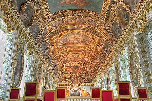 - Тронный зал (Salle du trône) — над троном синий балдахин. Бывшая королевская спальня.