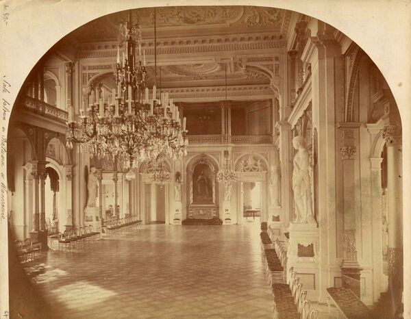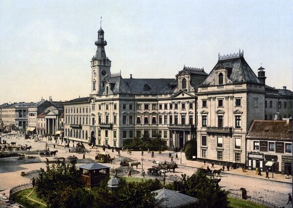 В 1863 году дворец был разрушен во время восстания в Польше. В 1864—1869 годах по проекту Юзефа Орловского дворец был отстроен в стиле неоренессанса: были установлены кровля с чердаком, балконы, новое крыло на месте дома Лагевницких и характерная пожарная каланча с часами с трёх сторон. В зале проводились заседания Городского совета, в портретной комнате с 25 портретами знаменитых поляков работал магистрат, а в зале Декерта располагался плафон «Триумф правды» авторства Марчелло Баччарелли, перенесённый из Дворца примаса. С середины XIX века в здании функционировала система центрального отопления[3].