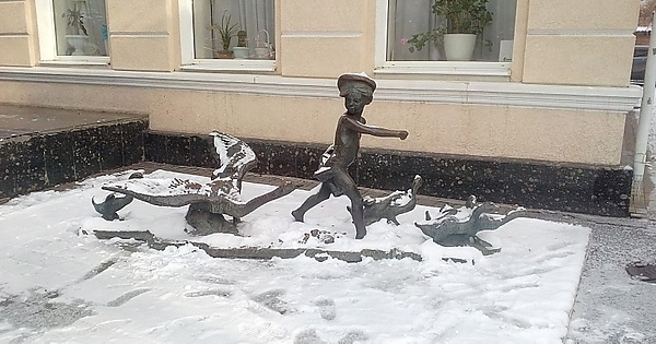 Напротив ЗАГСа располагается скамья примирения — своеобразный символ крепости семейных уз. Перед зданием находится скульптурная композиция из бронзы «Нахалёнок и гуси» (скульптор — Николай Васильевич Можаев, Заслуженный художник Украинской ССР).