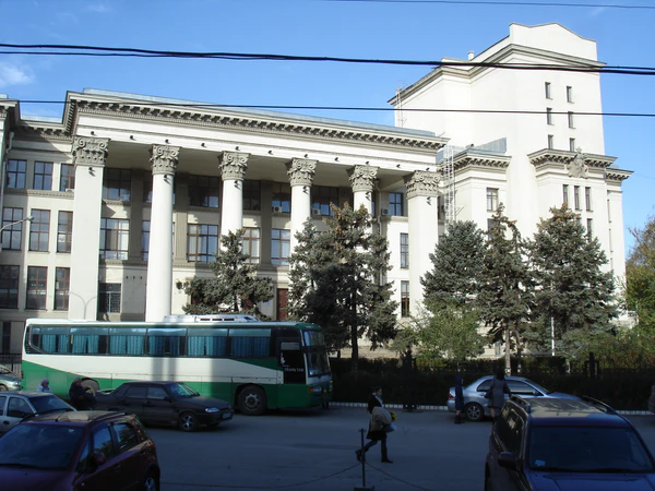 В ходе послевоенной реставрации фасад претерпел достаточно сильные изменения. В этот период конструктивизм подвергся своеобразным гонениям, у главного входа во дворец был организован гигантский портал с колоннадой. Тем не менее беглый осмотр с большого расстояния помогает представить силуэт здания в первозданном виде[4].