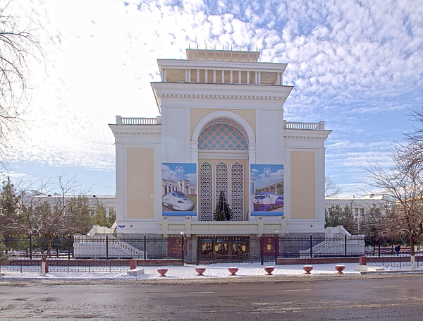Построен в 1938 году по проекту советского архитектора А. И. Павлова. В здании размещён кинотеатр, концертный зал, помещения центральной профсоюзной библиотеки ЦС Профсоюза железнодорожников и транспортных строителей Узбекистана, Дорожная научно-техническая библиотека ГАЖК «Узбекистан темир йуллари» и Музей истории Узбекистанской железной дороги.