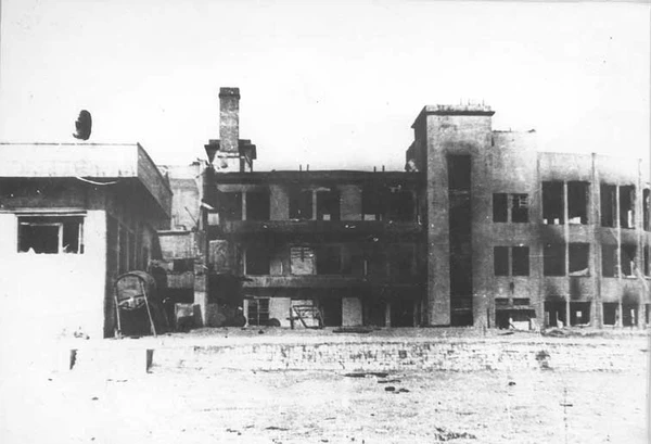 Во время немецкой оккупации Донецка в годы Великой Отечественной войны здание входило в состав концентрационного лагеря для советских граждан. В его помещениях были размещены комнаты допросов, пыток, административные помещения концентрационного лагеря. В 1943 году при отступлении немцы пытались уничтожить следы и сильно повредили здание — убрали перекрытия во многих местах. Остов здания без окон простоял до начала 1950-х годов, после чего начались работы по его восстановлению[2]. Восстановлено здание было в 1968 году[1] , в 1959 году работал пристроенный кинотеатр (фасад выходит на Ленинский проспект).