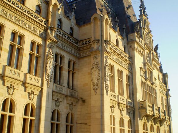 Румынский архитектор И. Д. Берендей разработал проект здания, он спроектировал его в ярком неоготическом стиле. Во время Первой мировой войны, строительство было остановлено из-за ограниченности ресурсов, в недостроенном здании размещались румынские и русские войска, а также различные общественные учреждения и военные госпитали. Здание было достроено лишь 11 октября 1925 года и официально открыто год спустя королём Фердинандом I.