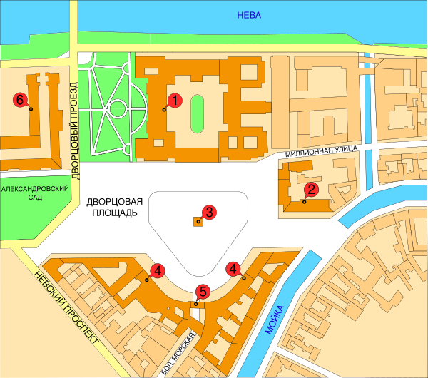 - Достопримечательности Санкт-Петербурга. Дворцовая площадь. ilovepetersburg.ru. Дата обращения: 2 сентября 2010. Архивировано 21 августа 2011 года.