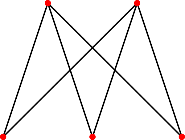 - Полный двудольный граф, у которого в каждой части больше 2 вершин, является непланарным.