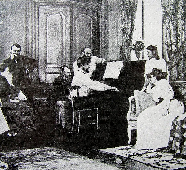 Ещё в 1886—1887 годах Сати опубликовал свои первые импрессионистские опусы (для фортепиано и голоса с фортепиано). Несомненно, общение с этим независимым и свободным человеком, находящимся вне всех группировок и академий, значительно ускорило формирование окончательного (зрелого) стиля Дебюсси.[7] Необычайно резкий и бурный характер носило у Дебюсси также и преодоление вагнеровского влияния. И если до 1891 года его преклонение перед Вагнером (по собственному признанию) «доходило до той степени, когда забываешь о правилах приличия», то спустя всего два года Дебюсси договорился до полного отрицания всякого значения Вагнера для искусства: «Вагнер никогда не служил музыке, он даже не служил Германии!» Многие из его близких друзей (включая Шоссона и Эмиля Вюйермо) так и не смогли понять и принять этой внезапной перемены, что повлекло за собой охлаждение также и личных отношений.[8]