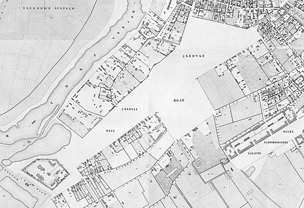 В XVII веке на Девичьем поле были устроены сады и специальные аптекарские огороды, где разводились лекарственные травы. Ведал этими огородами, а также и аптеками и наблюдал за призреньем больных Аптекарский приказ — один из самых старых московских приказов. В конце XVIII века здесь появились загородные дворы знати — князей В. В. Голицына и М. А. Черкасского, боярина Д. Н. Головина. В 1765—1771 годах на поле стоял казенный театр, в котором летом и в праздничные дни давались бесплатные представления. Традиции народных гуляний стали развиваться здесь после переноса сюда рождественских и пасхальных гуляний из-под Новинского.