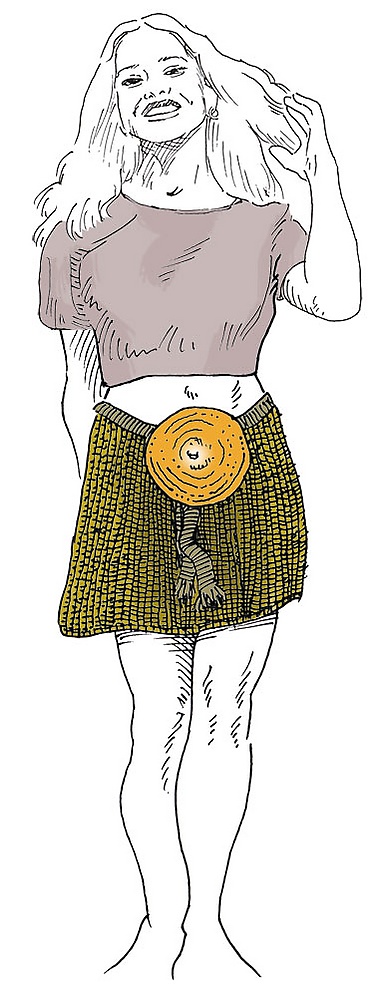 Она была похоронена в одежде и лежала на воловьей коже. На ней был свободный корсаж с рукавами до локтя, а также короткая юбка. На руках были бронзовые браслеты, на талии — шерстяной пояс с крупным диском, украшенным спиралями и шипом. У её ног лежали кремированные останки ребёнка 5—6 лет. У изголовья лежала небольшая коробка из берёзовой коры, в которой находились шило, бронзовые заколки и сетка для волос.