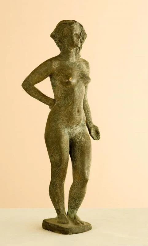 Скульптура представляет собой обнажённую женскую фигуру в полный рост высотой 38 см. Объект установлен на низком постаменте высотой 1 см. Фигура изображает женщину, стоящую, опираясь на правую ногу, при этом левая нога немного согнута. Левая рука опущена вдоль туловища, а правая согнута в локте и касается нижней части спины. Голова слегка повёрнута вправо. Волосы выполнены обобщённо и в основном размещены справа от лица.