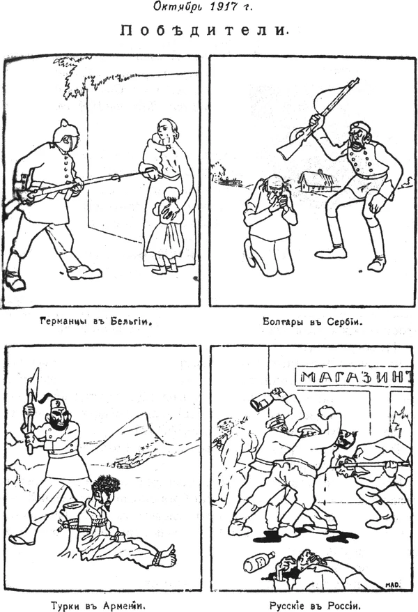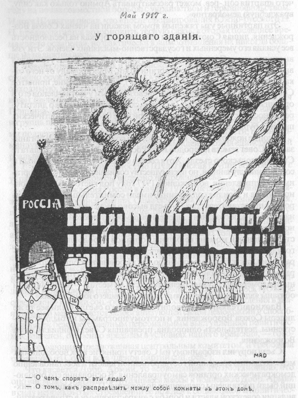 В «больших» газетах появились постоянные рубрики и крупные заголовки: «Анархия». Эта пресса была ныне переполнена описаниями всевозможных эксцессов и беспорядков…Эксцессов на самом деле было много, может быть, стало больше, чем прежде. Суды Линча, разгромы домов и магазинов, насилия и глумления над офицерами, над провинциальными властями, над частными лицами, самоличные аресты, захваты и расправы ежедневно регистрировались десятками и сотнями. В деревне участились поджоги и погромы усадеб. Крестьяне начинали по-своему «регулировать» землепользование, запрещали порубки лесов, угоняли помещичий скот, брали «под контроль» хлебные запасы и не давали вывозить их к станциям и пристаням….Но больше всего «нарушали порядок и государственную жизнь», конечно, разгулявшиеся солдаты.