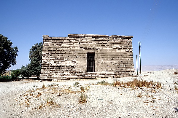 В наши дни от храма остались лишь небольшое главное здание и руины пропилей, а также кирпичная ограждающая стена и колодец[1]. Площадь храмового участка составляла 78×58 м, сам храм гораздо меньше — 13×16 м.[3]. Вход обращён на юг. Внешние стены не имеют значительных украшений, но внутри хорошо сохранились рельефы. Святилище окружено коридором, из которого можно попасть в боковые часовни и вабет (место очищения); из этого коридора также ведёт лестница на крышу[3]. С южной стороны внешней стены были повторно использованы некоторые каменные блоки от более ранних построек, судя по рельефам на них, большинство из них, скорее всего, привезены из Мединет-Абу[3].