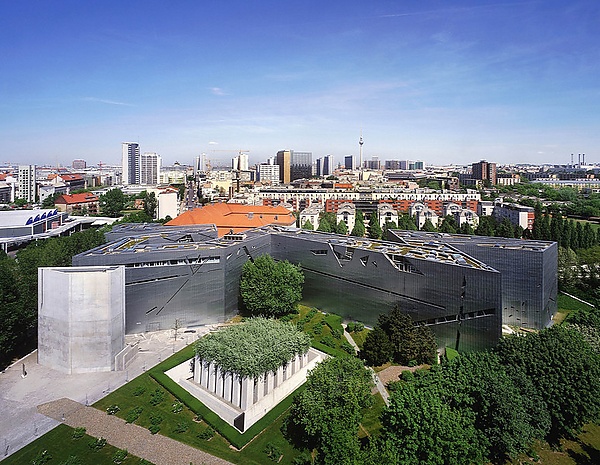 Помимо концепций Деррида о метафизике присутствия и деконструктивизме, его идеи о следе и стирании, воплощённые в его философии письма и архиписьма[14], нашли своё отражение в деконструктивистских мемориалах. Даниэль Либескинд рассматривал многие из своих ранних проектов как форму письма или дискурса о письме и часто работал с формой конкретной поэзии. Он создавал архитектурные скульптуры из книг и часто покрывал модели текстами, открыто связывая свою архитектуру с письмом. Понятия «след» и «стирание» были затронуты Либескиндом в его эссе и проекте Еврейского музея в Берлине. Музей задуман как след, оставленный в память о Холокосте, чтобы сделать его тему понятной и пронзительной.