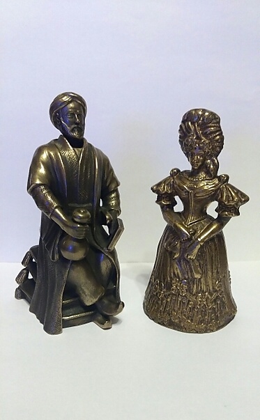 - Колокольчики-фигурки или фигурные колокольчики. Они могут быть в форме фигурок людей, животных, птиц и т.д. Металлические колокольчики в виде фигурок людей называются lady bells [7],[8],[9].