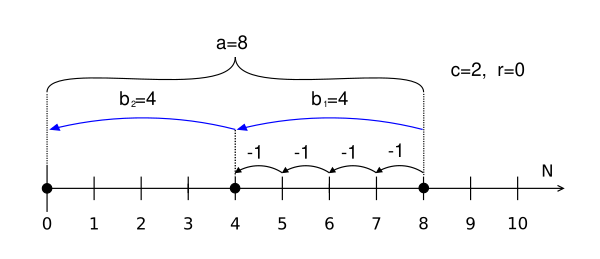 Воспользуемся определением натуральных чисел как классов эквивалентности конечных множеств. Обозначим классы эквивалентности конечных множеств порождённых биекциями, с помощью скобок: . Тогда математическая операция «деление» определяется следующими образами:
