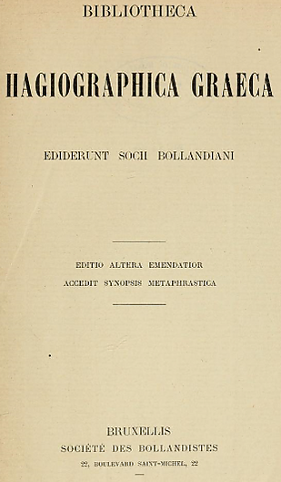 - Bibliotheca hagiographica graeca. Bruxelles, 1895