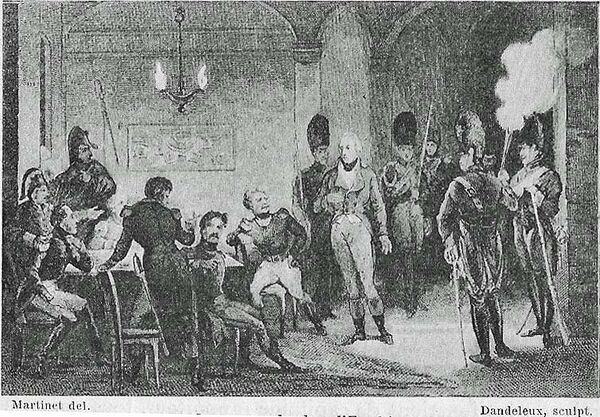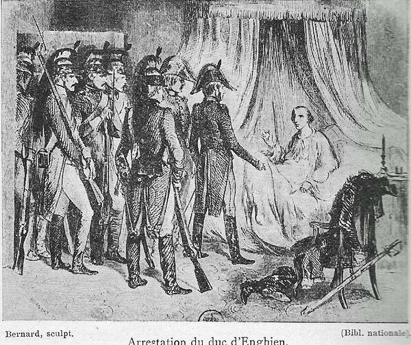 Хотя принц, о прибытии которого говорили заговорщики-роялисты, не прибыл, Наполеон не хотел отказываться от уже намеченного плана. Молодой принц Конде, герцог Энгиенский, находившийся в Эттенгейме на территории Бадена, был насильственно вывезен и после инсценировки судебного процесса предан мечу[5].