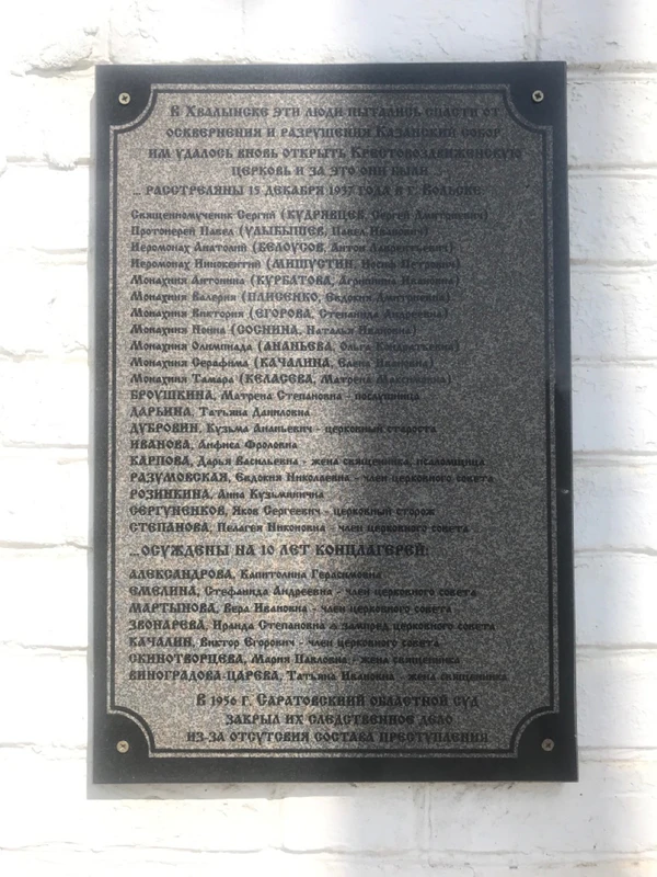 «Дело хвалынских церковников» — один из эпизодов сталинских репрессий. Антирелигиозная пропаганда и активная борьба с православной церковью привели к утрате многих памятников архитектуры, объектов и обычаев локальной культуры Хвалынска. Несмотря на противостояние, во второй половине 1940-х годов Русская православная церковь продолжила службы в Хвалынске: в 1946 году был переосвящен храм Воздвижения Честного и Животворящего Креста Господня.