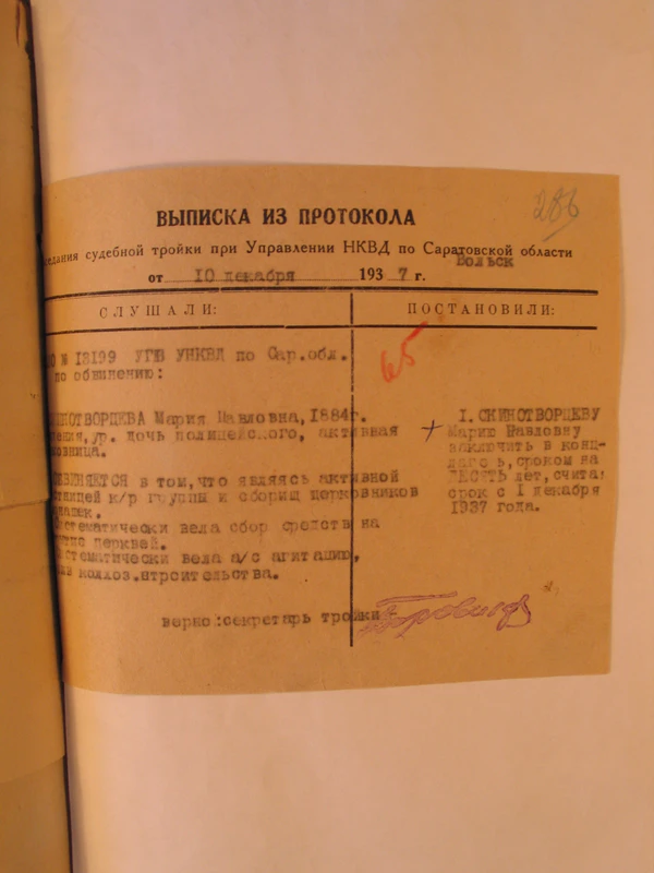 После рассмотрения доноса было заведено дело № 13199, и протоиерей с прихожанами Хвалынска (всего было 28 человек) были арестованы Хвалынским РО УНКВД и были заключены в Вольскую тюрьму.