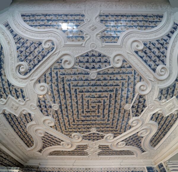 Облицовочные плитки — с угловым орнаментом и сельским или морским пейзажем в центре — делали с таким расчётом, чтобы из них можно было выкладывать большие панно. Такие плитки вывозили во многие страны, в том числе и в Россию. Во дворце Меншикова в Санкт-Петербурге сохранилось четыре комнаты, стены и потолки которых покрывают бело-синие расписные плитки (неправильно называемые изразцами). К 1727 году таких комнат было тринадцать. Часть плиток доставили из Делфта, остальные делали на кирпичном заводе в Стрельне и расписывали в мастерских самого Меншикова на Васильевском острове[10]. В отличие от экономных голландцев русские мастера покрывали плитками сплошь потолок и стены. При «ковровой» кладке на пересечении швов возникал дополнительный узор повторяющихся розеток (в некоторых случаях золочёных) или иных угловых элементов. Считается, что такие интерьеры, сверкающие белизной, усиливали светоносность стен и потолков в хмурые петербургские дни. Во время реставрационных работ 1990-х годов многие утраченные плитки были воссозданы мастерами-керамистами, выпускниками отделения художественной керамики ЛВХПУ им. В. И. Мухиной[11].