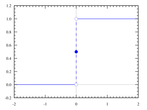 Данный график почти всюду является графиком функции Хевисайда. Производная функции Хевисайда является единичной дельта-функцией, график которой условно можно изобразить как