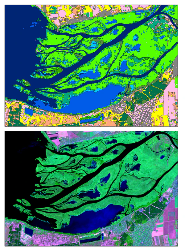 Дельта Днепра (Днепровские плавни) занимает низовья реки Днепр при его впадении в Днепровский лиман Чёрного моря. В отличие от Дуная, дельта Днепра не имеет ярко выраженной треугольной формы[1].