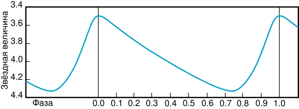 Блеск Дельты Цефея меняется периодично (с периодом 5 дней и 9 часов), причём рост происходит быстрее, чем спад. Звёздная величина равна 3,5m в максимуме и 4,4m в минимуме. Спектральные же исследования этой звезды выявили её на первый взгляд парадоксальные особенности: в минимуме блеска она является типичным представителем спектрального класса G2 (как у нашего Солнца), а к максимуму постепенно превращается в звезду класса F5. Период пульсации составляет 5,366249 дней, при этом повышение до максимума происходит быстрее, чем последующее снижение до минимума[11]. Более того, при уменьшении блеска линии поглощения в её спектре смещаются к синему концу, а при возрастании — к красному. Можно было бы предположить, что звезда является членом двойной системы, но кривая её блеска совершенно не похожа на кривую спектрально-двойных звезд. Это и послужило ключом к разгадке тайны Дельты Цефея.