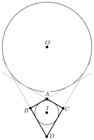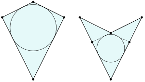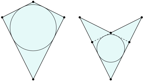 - Если дельтоид невыпуклый, то можно построить окружность, касающуюся двух бо́льших сторон и продолжений двух меньших сторон, и окружность, касающуюся двух меньших сторон и продолжений двух бо́льших сторон.