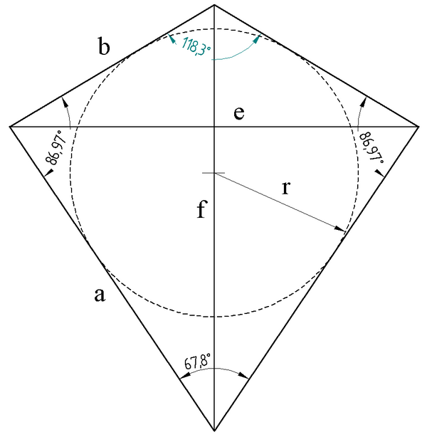 Наибольший угол грани (между двумя «короткими» сторонами) равен наименьший угол грани (между двумя «длинными» сторонами) два средних по величине угла (между «короткой» и «длинной» сторонами)