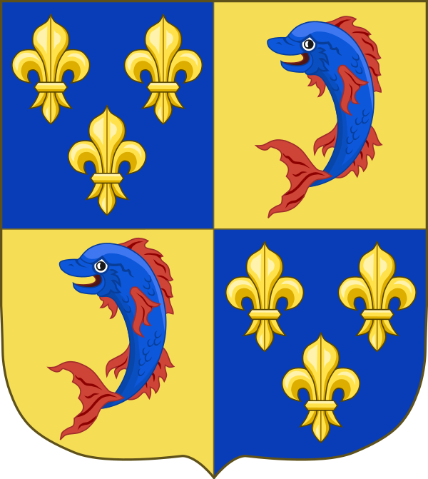 Дельфин был изображён на гербе графа Гига IV Вьеннского, и граф получил прозвище «Le Dauphin». В договоре между графом и епископом Гренобля упоминалось, что данный граф имеет в качестве шлемовой эмблемы дельфина и потому называется "рыцарем дельфина" (фр. chevalier du dauphin). Затем титул «Дофин Вьеннский», произошедший от этого прозвища, наследовали графы Вьеннские. Область, которой они правили, получила название Дофине, благодаря старому гербу непонятного происхождения (возможно, что относится к первому крестовому походу). В 1349 году обнищавшие дофины Вьеннские (носили титул "дофин" ещё до 1140 года), продали за 120 тысяч золотых форинтов свои владения и титул Карлу, внуку короля Франции Филипа IV Валуа, который впоследствии наследовал трон под именем Карла V. Среди условий договора о передаче владений, было включено обязательство, в силу которого король Франции должен был передать по наследству эти владения своему первенцу, т.е. наследному принцу, и только ему, в результате чего тот унаследовал и титул дофина (Франции). Это условие соблюдалось вплоть до 1830 года, до изгнания Карла X, чей сын граф Ангулемский, был последним "дельфином".