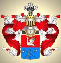 Щит разделён горизонтально на две части, из коих в верхней в красном поле, находится серебряный лебедь (польский герб Лебедь). В нижней части в голубом пол означен золотой лук (изм. польский герб Лук) и на нём крестообразно положены бердыш и стрела, остриями в правую сторону.