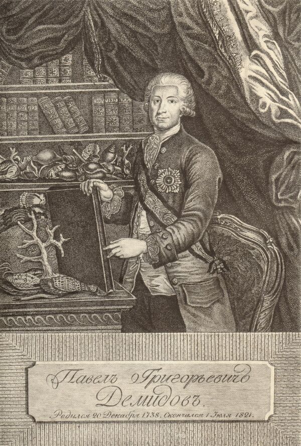 В 1772 году П. Г. Демидов был избран в действительные члены «Вольного российского собрания» и в том же году отправился за границу для лечения, посетив при этом Германию, Францию и Голландию. Во время путешествий Демидов приобретал коллекции медалей, монет, антиквариата. Особое внимание Павел Григорьевич уделял букинистике, собрав обширную коллекцию книг на латыни, немецком, французском и русском языках, а также древние рукописи[3].