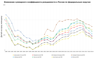 Для обеспечения простого воспроизводства населения необходимо, чтобы . В России этот показатель снизился с 2,0 в 1990 году до 1,16 в 1999 году, что значительно ниже уровня воспроизводства.