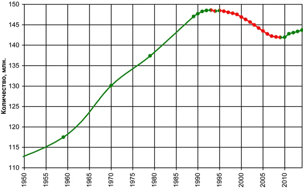 Ранее, на протяжении последних двенадцати лет смертность россиян систематически сокращалась. Существуют две причины падения численности населения РФ. Первая — проблемы в системе здравоохранения и в социально-экономической сфере[47]. Вторая — колебания по синусоиде, связанные с количеством граждан, родившихся в тот или иной период.