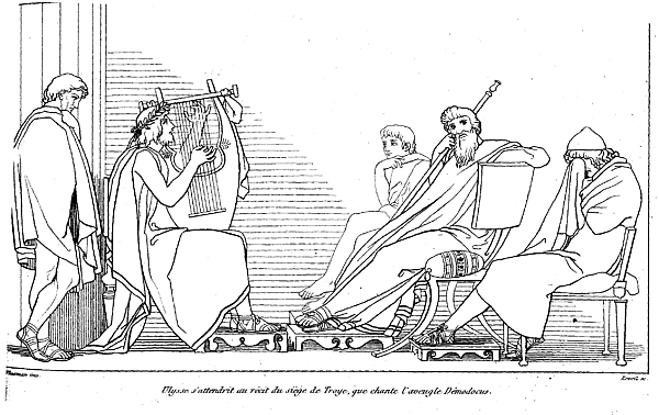 В «Одиссее» слепого Демодока по просьбе царя Алкиноя приводит на пир и сопровождает глашатай Понтоной.