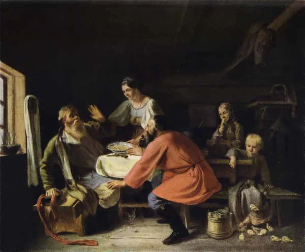 Демьян сварил уху и пригласил в гости своего соседа Фо́ку, который наевшись досыта, продолжал получать от хозяина настойчивые предложения отведать ещё ушицы: