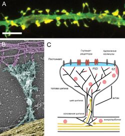 - ↑ Zhang Shengxiang, Wang Jiangbi and Wang Lei. Structural plasticity of dendritic spines (англ.) // Frontiers in Biology : journal. — 2010. — Vol. 5, no. 1. — P. 48—58. — ISSN 1674-7984. — doi:10.1007/s11515-010-0011-z.