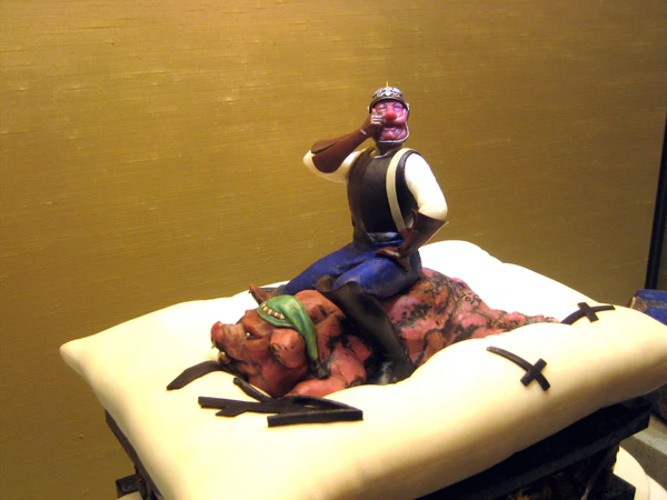 Начало Первой мировой войны, потери русской армии и страдания народа заставляют художника по-новому взглянуть на своё творчество. Он принимает участие в благотворительной выставке живописцев. События заставляют его обратиться к любимому камню и заняться созданием особой серии аллегорических изображений воюющих держав. Эти произведения стали основой последней прижизненной выставки мастера. Все средства от продажи входных билетов Алексей Козьмич передал в пользу русских солдат и общества попечения о детях.