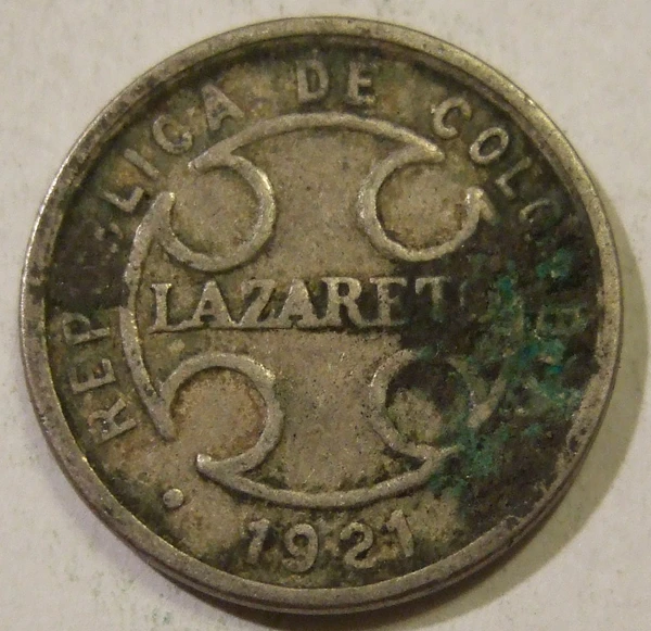 Старейший выпуск специальных денег для лепрозория был осуществлён в 1901 году для трёх лепрозориев в Колумбии: Агуа-де-Диос, Кано-де-Лоро, и Контратасьон. Были выпущены монеты 5 номиналов: 2.5 сентаво, 5 сентаво, 10 сентаво, 20 сентаво, 50 сентаво. На них была выгравирована надпись «Республика Колумбия 1901»[3]. Эти монеты были выпущены после первого конгресса по изучению лепры в Берлине в 1897 году.