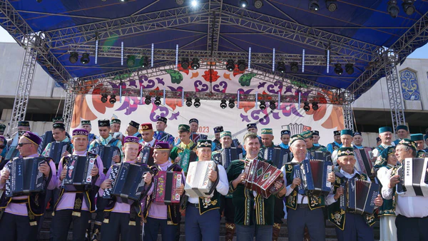 - В День праздника более тысячи гармонистов из всех регионов Татарстана и России собираются на площади перед театром Камала на торжественное мероприятие «Играй, гармонь!». Гармонисты проходят шествием от театра по улице Баумана до площади Первого мая, сопровождая движение песнями и танцами под звуки гармони. Далее участники движутся к стенам Казанского кремля, где на береговой линии реки Казанки проводится праздничный концерт с участием гармонистов[13].