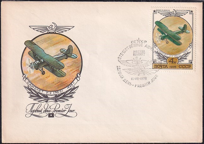 Почтовый конверт СССР с гашением Первого дня, 1978: Отечественное авиастроение, почтовая марка 4 коп.