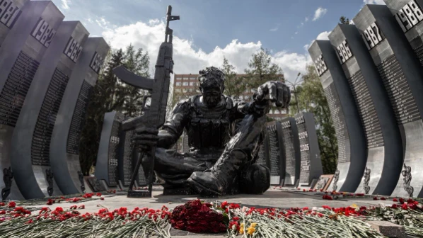 В Екатеринбурге ветераны боевых действий возлагают цветы к монументу воинам-интернационалистам «Чёрный тюльпан».