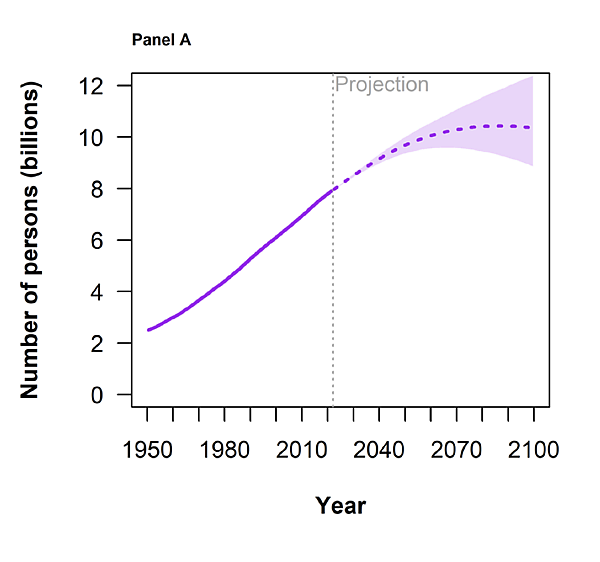 - Прогнозируется, что в целом население планеты будет расти до 2086 года и достигнет 10,43 миллиарда человек, причём прирост этот будет обеспечиваться в основном странами Африки южнее Сахары. Население этих стран увеличится с 1,2 млрд в 2022 году до 2,1 млрд к 2050 году и до 3,44 млрд к 2100 году.