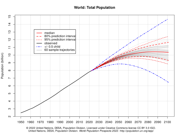 Прогноз ООН 2022 года, опубликованный 11 июля, учитывает последствия пандемии COVID-19, события связанные с политикой России в отношении Украины, а также данные новейших переписей населения (в том числе в Китае в 2020 году) и содержит следующие положения[4][23]: