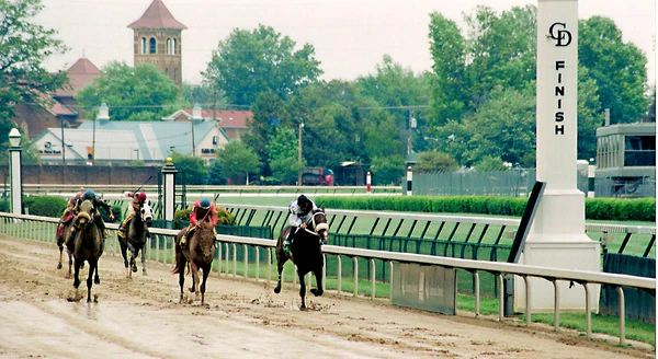 - Кентукки Дерби проводится на ипподроме «Черчилл-Даунс» в Луисвилле, штат Кентукки, США. Это также одна из главных скачек страны, пусть не с самым высоким призовым фондом (дороже Кентукки Дерби в США только приз Бридерс Кап). Также как и Эпсомское Дерби в Англии, Кентукки Дерби является одной из трёх скачек американской «Тройной Короны».