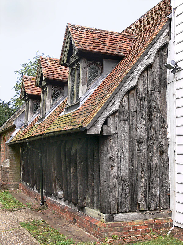 Дерево широко применялось в архитектуре Северной Европы (Ирландии, Британии, Германии, Скандинавии). В странах, бывших под владычеством Римской империи, после её гибели строительство из камня уступило место деревянному зодчеству. В англо-саксонской Британии сам глагол «строить» буквально означал «возводить из дерева». Ирландские и британские источники периода раннего Средневековья особенно часто упоминают церковные строения из дерева. С VII века встречаются детальные описания построек, такие, как рассказ о деревянной молельне в «Гесперийских речениях» (стихи 547—560). Беда Достопочтенный пишет о деревянных постройках, возводимых «по обычаю скоттов» (mos Scottorum), крытых тростником. До настоящего времени дошёл деревянный центральный объем церкви Святого Андрея в Гринстеде (графство Эссекс, Великобритания), заложенной в XI веке — единственное сохранившееся сооружение донорманнского периода. Древнейшая часть неоднократно перестроенной церкви согласно последним исследованиям, датируется 1013 годом. Стены возведены из вертикально поставленных, наподобие ограды-частокола, дубовых полукруглых панелей. Судя по рисунку XVIII века, сохранившему вид западного фронтона церкви до её перестройки, в её конструкции отсутствовали горизонтальные элементы[5]. Гринстедская церковь относится к наиболее распространённому типу церковных строений — базиликальному, однако в Британии существовали и более сложные сооружения центрического типа, такие как церковь в Поттерне (Уилтшир), реконструированная современными археологами. На ковре из Байе (конец XI века) изображена в разрезе поджигаемая норманнами двухъярусная церковь, в которой спрятались местные жители. Однако небольшое количество сохранившихся документальных источников и археологические находки не позволяют в достаточной степени восстановить историю британского деревянного зодчества эпохи раннего Средневековья[6].